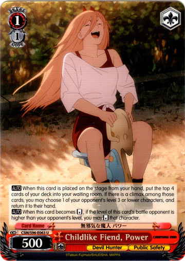 【AUTO】 When this card is placed on the stage from your hand, put the top 4 cards of your deck into your waiting room. If there is a climax among those cards, you may choose 1 of your opponent's level 3 or lower characters, and return it to their hand.【AUTO】 When this card becomes 【REVERSE】, if the level of this card's battle opponent is higher than your opponent's level, you may 【REVERSE】 that character.