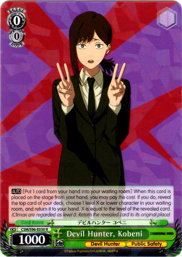 【AUTO】 [Put 1 card from your hand into your waiting room] When this card is placed on the stage from your hand, you may pay the cost. If you do, reveal the top card of your deck, choose 1 level X or lower character in your waiting room, and return it to your hand. X is equal to the level of the revealed card. (Climax are regarded as level 0. Return the revealed card to its original place)