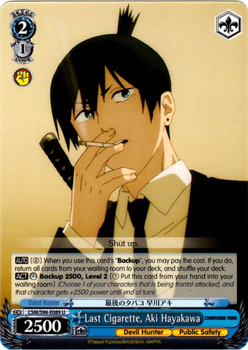 【AUTO】 [(2)] When you use this card's "Backup", you may pay the cost. If you do, return all cards from your waiting room to your deck, and shuffle your deck.【ACT】 【COUNTER】 Backup 2500, Level 2 [(1) Put this card from your hand into your waiting room] (Choose 1 of your characters that is being frontal attacked, and that character gets +2500 power until end of turn)