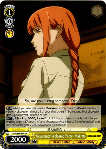【AUTO】 When you use this card's "Backup", if you have a 《Devil Hunter》 or 《Devil》 character, choose 1 of your characters in battle, and that character gets +1000 power until end of turn.【ACT】 【COUNTER】 Backup 1000, Level 1 [Put this card from your hand into your waiting room] (Choose 1 of your characters that is being frontal attacked, and that character gets +1000 power until end of turn)