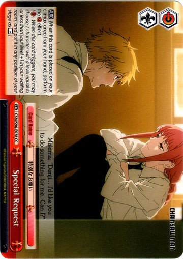 【AUTO】 When this card is placed on your climax area from your hand, perform the effect.(: When this card triggers, you may choose 1 character with a level equal to or less than your level +1 in your waiting room, and put it in any position of your stage as 【REST】)