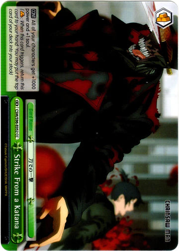 【CONT】 All of your characters get +1000 power and +1 soul.(: When this card triggers, return this card to your hand. You may put the top card of your deck into your stock)